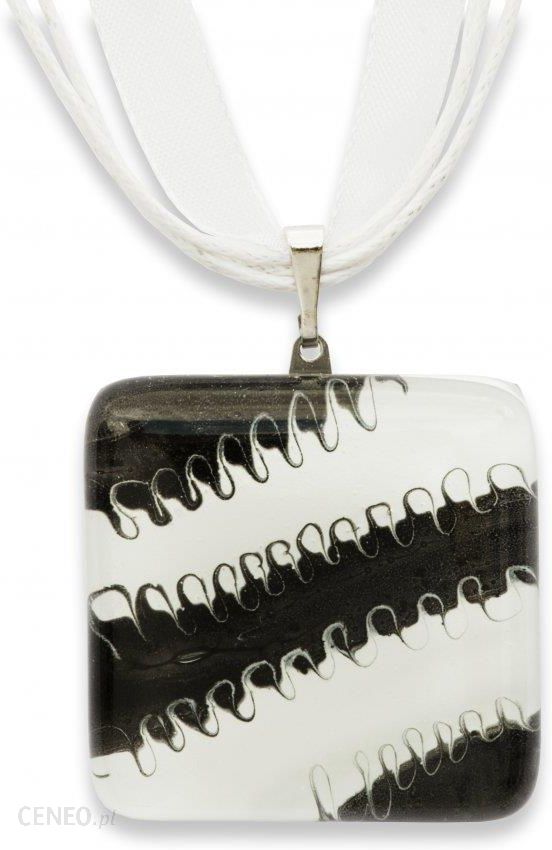 Szklany wisiorek na szyję z nietypowym abstrakcyjnym wzorem w czarno-białych barwach. Szklane wisiorki wykonane są ręcznie, a każdy egzemplarz jest oryginalny.Wymiary:3 x 3 cmMateriał zawiasu:- woskowany sznur ze wstążką z organzy – 45 cm