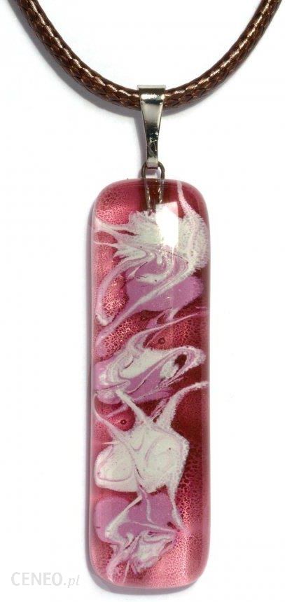 Smukły wisiorek na szyję z oryginalnym abstrakcyjnym wzorem w kolorze bordowym. Szklane wisiorki wykonane są ręcznie, a każdy egzemplarz jest oryginalny.Wymiary:1 x 4 cmMateriał zawiasu:- pleciony cienki sznurek brązowy 45 cm