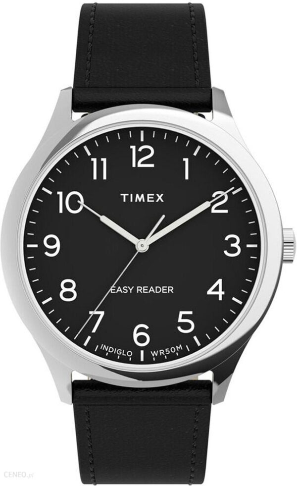 TW2U22300 Easy Reader to bardzo klasyczna, ponadczasowa propozycja dla kobiet w każdym wieku. Czarny, skórzany pasek zakończony jest zapięciem na sprzączkę, dzięki czemu jest łatwy w użytkowaniu i idealnie dopasowuje się do nadgarstka. Czarna tarcza wykonana została w stylu minimalistycznym, posiada srebrne cyfry oraz wskazówki, dzięki czemu jest bardzo czytelna. Świetnie komponuje się z otaczającą ją srebrną tarczą. Zegarek wyposażony jest w system INDIGLO, który pozwala na podświetlenie tarczy od spodu po naciśnięciu koronki. Dodatkowo wskazówki zostały pokryte specjalną masą świecącą w ciemności. Wodoszczelność na poziomie 5 ATM pozwala na delikatne zanurzenie zegarka podczas kąpieli w wannie. Kwarcowy mechanizm zapewnia dokładne odmierzanie czasu, a mineralne szkiełko odporne jest na zarysowania i pęknięcia. Zapewniamy 3 letnią gwarancję na wszystkie produkty firmy TIMEX realizowaną w oficjalnych serwisach. Montres.pl jest oficjalnym autoryzowanym sprzedawcą marki TIMEX w Polsce.