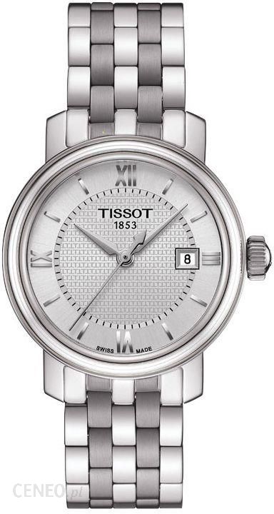 Materiały i dane techniczne Model:T097.010.11.038.00 Seria:T-Lady Bridgeport Quartz Lady Typ:Zegarek damski / Elegancki średnica:Ø 29.00 mm Grubość:8.15 mm Waga:71 gramy Koperta:Szczotkowana/polerowana Stal Dekiel:Lity Bransoleta:Szczotkowana i polerowana Stal Tarcza:Srebrna / Cyfry rzymskie z markerami Sprzączka:Zatrzaskowe zapięcie / Stal Szkło:Szafirowe, odporne na zarysowania Bezel:Stal / Szczotkowana/polerowana Napęd i funkcje Typ napędu:Quartz (zasilany bateriami) Ruch sekundnika:Skokowy Napęd:Tissot F03.111 Data:Dzień miesiąca Wodoszczelność:5 ATM Inne informacje:Zakręcana korona