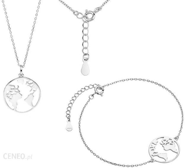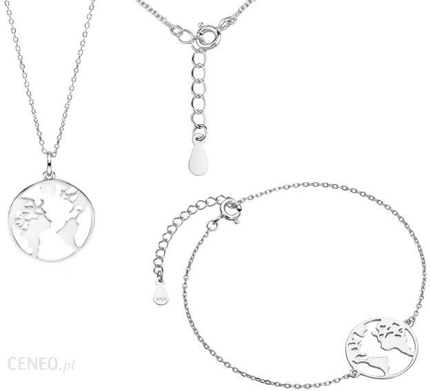 Elegancki rodowany srebrny komplet gwiazd składający się z naszyjnika oraz bransoletki, z ozdobami w kształcie przypominającym mapę świata, model Z1726Z.