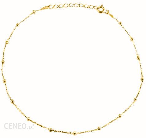 Elegancka pozłacana srebrna bransoletka na nogę, wykonana z łańcuszka o splocie ankier, zdobiona gładkimi polerowanymi na wysoki połysk kuleczkami, model FZ025P2_BNG.